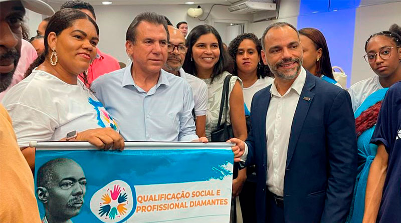 Entre os participantes, esteve presente o grupo de alunos do Projeto Qualificação Profissional e Social Diamantes, iniciativa contemplada pelo Programa Manoel Querino de Qualificação Social e Profissional. Esse projeto, desenvolvido pelo Instituto Diamantes, integra as ações executadas na Bahia por meio dos programas Qualifica Bahia e Manoel Querino, ampliando oportunidades de formação para jovens de diferentes regiões.